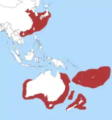 The Australasian snapper (Chrysophrys auratus) or silver seabream is a species of porgie found in coastal waters of Australia, Philippines, Indonesia, mainland China, Taiwan, Japan and New Zealand. Its distribution areas in the Northern and Southern Hemispheres are disjunct.[2] Although it is almost universally known in Australia and New Zealand as snapper, it does not belong to the snapper family, Lutjanidae. It is highly prized as an edible fish, with a sweet sea taste and a firm texture.