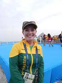 In May 2015, the Australian Paralympic Committee (APC) announced Kate McLoughlin as the Chef de Mission. She replaced Jason Hellwig, the former APC CEO, who stepped down from the role.[6] The APC appointed Kurt Fearnley and Daniela Di Toro as team captains. 2004 Athens Games was the last time the team had captains.[7] Wheelchair basketballer Brad Ness was announced as the Opening Ceremony flag bearer at a ceremony at the Paralympic Village on 5 September 2016.[8] Curtis McGrath who lost his legs in the Afghanistan war and won Australia's first gold medal in paracanoe at the Games carried the Australian flag in the closing ceremony.[9]