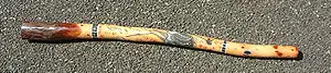 - The ROM (or Rom - see previous section) ceremony, involving songs, dances, and artefacts, which involve presenting other neighbouring communities with decorated totem poles, with the intent of establishing or re-establishing friendly terms with them; a form of diplomacy. The process of making and decorating the poles can extend over weeks, and involves successive sessions of song and dance, culminating in the ceremony where gifts are exchanged.[22][38] In April 2017, a four-day festival to mark the Rom ceremony was attended by about 500 people at Gapuwiyak School, in north-eastern Arnhem Land. It was planned to hold the event each term.[20] Historian and writer Billy Griffiths wrote in his award-winning book Deep Time Dreaming: Uncovering Ancient Australia (2018), of the Rom ceremony as an "extension of friendship" and "ritual of diplomacy", of which the "full significance ... has yet to be appreciated by the Australian public. At the heart of this symbolic act is a gift – of song and dance and cultural knowledge, but it comes with obligations. The acceptance of such a gift enmeshes the recipients into a continual process of reciprocity".[39]