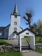 Austre Moland Church (Norwegian: Austre Moland kirke) is a parish church of the Church of Norway in Arendal Municipality in Agder county, Norway. It is located in the Brekka, along the lake Molandsvann. It is one of the churches for the Moland parish which is part of the Arendal prosti (deanery) in the Diocese of Agder og Telemark. The white, wooden church was built in a cruciform design in 1673 using plans drawn up by the architect Ole Ormsen. The church seats about 496 people.[1][2][3]
