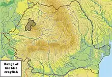Austropotamobius bihariensis is a species of crayfish in the family Astacidae. It is known to exist only in Romania being restricted to the rivers in the western Apuseni Mountains.[1] Its proposed English common name is idle crayfish.[2] It is supposed to have diverged/split ~15 Ma old from a common relative of A. torrentium from the Dinarides and evolved isolated due to the historically tectonic north-eastern movement of Tisza-Dacia mega-unit (including the Apuseni Mountains) through the Pannonian Basin, during the Miocene.[3] The molecular divergence in 582 base length nucleotides of COI mtDNA sequences is supported by 43 mutational steps, a differentiation of 7.4% from the sister clade of A. torrentium located in north-western Dinarides[1]