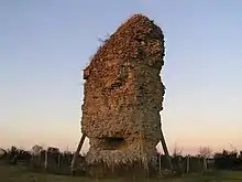 [13] The "beacon" of Ebéon is called the "Pyramid" and is a Gallo-Roman remains at a place called "Bois-Charmand". This beacon or tomb still forms a masonry block 16 metres high and 6 metres in diameter. According to a local legend it was the work of fairies: three "ladies" who built it overnight. They used an enchanted hammer that they bounced back and forth to each other through the air. It hit the youngest in the forehead and she was killed. There is also another well-preserved tower or stack near Saujon: the Tour de Pirelongue. - The Chateau of Authon.