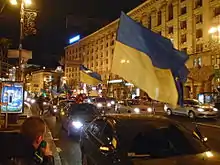 Automaidan organized numerous car processions to residencies of anti-Ukrainian officials including the one on December 29, 2013 to the president's residence in Mezhyhirya to voice their protests at his refusal to sign the Ukraine–European Union Association Agreement in December 2013.[1] The motorcade was stopped a couple of hundred metres short of his residence. This resulted in AutoMaidan members being identified and becoming a major target of violent attacks by government forces, militia, and government sponsored titushkys.