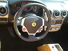 Several companies owned by Fiat S.p.A. were influential in the development of automated manual transmissions. Ferrari's involvement with automated manual transmission began with the 7-speed semi-automatic paddle-shift transmission used in the 1989 Ferrari 640 Formula One racing car. In 1992, the Ferrari Mondial T introduced the option of a "Valeo" 5-speed semi-automatic transmission.[36] This transmission used an electro-mechanical actuator to automatically operate the clutch,[37] while the gearshift mechanism was a standard H-pattern shifter operated as per normal transmissions.[38] In 1997, the Ferrari F355 became available with an "F1" 6-speed transmission, which uses paddle-shifters located behind the steering wheel or can be driven in a fully-automatic mode.[39] The F355's successors offered similar transmissions,[40] until the company switched to a dual-clutch transmission for the Ferrari 458 in 2009.