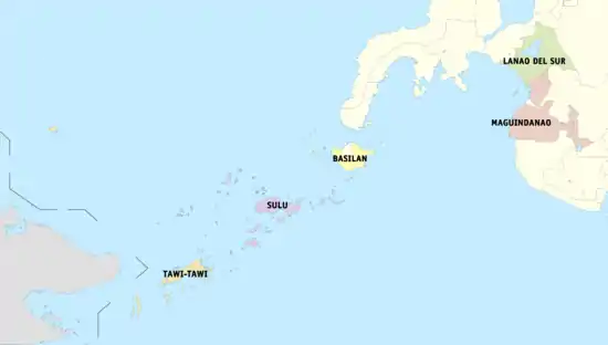 The Autonomous Region in Muslim Mindanao (Tagalog: Rehiyong Awtonomo ng Muslim Mindanao; Arabic: الحكم الذاتي الاقليمي لمسلمي مندناو Al-ḥukm adh-dhātī al-'iqlīmī li-muslimī Mindanāu;[3][4] abbreviated as ARMM) was an autonomous region of the Philippines, located in the Mindanao island group of the Philippines, that consisted of five predominantly Muslim provinces: Basilan (except Isabela City), Lanao del Sur, Maguindanao, Sulu, and Tawi-Tawi. It was the only region that had its own government. The region's de facto seat of government was Cotabato City, although this self-governing city was outside its jurisdiction.