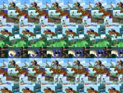 ![]() Depth map example autostereogram: Patterns in this autostereogram appear at different depth across each row. | ||||