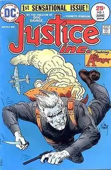 In 1975, DC Comics published a comic called Justice, Inc. which starred the Avenger.[11] This was during the time they were also publishing The Shadow. The Avenger also appeared in issue #11 of The Shadow. The first two issues were based on stories from the pulp magazine. Issues #2–4 were drawn by Jack Kirby (as were the covers to issues #2 and #3). The comic only lasted four issues.