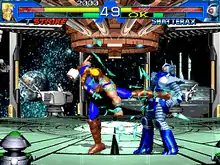 Avengers in Galactic Storm is mostly space-themed and plays similarly to other 2D versus fighting games during its release, which the player's character fights against his or her opponent in best two-out-of-three matches in a single player tournament mode with the computer or against another human player. The player has a character roster of eight playable fighters to choose from, each with their moves and fighting styles from the comics. The main unique feature of Avengers in Galactic Storm is the assistant character roster. Players choose both a playable character and an assistant to fight with before proceeding with the selected mode.[2][3] There are three types of bars above the fighting segments: health, power and assistant. If the health bar becomes empty, that character becomes knocked out. If the power bar becomes full, that character now has a chance to perform desperation moves. If one of the two assistant bars become full, that character can call out his or her assistant to briefly attack his or her opponent (up to two times) before they leave the stage.