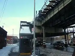 As part of Contract 4 of the Dual Contracts, between the city and the BRT, a three-track elevated railway was built above the surface Culver Line from the Fifth Avenue Elevated southeast and south to Coney Island.[4] The Culver Line was operated as a branch of the Fifth Avenue Elevated, with a free transfer at Ninth Avenue to the West End Line into the Fourth Avenue Subway.[5][6][7][8] Avenue X station opened as the line was extended from Kings Highway at noon on May 10, 1919.[9][10][11]