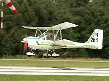 The Mistral is a biplane of mixed wooden and composite construction, with forward swept wings, with the all-moving lower wings used as large ailerons, and a conventional, all-moving tailplane. It has a fixed tricycle landing gear and a nose-mounted Rotax piston engine. The Mistral has an enclosed cockpit with two side-by-side seats forward of the wings.[1][2]