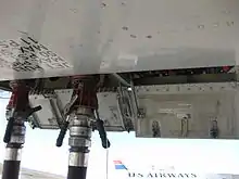 Underwing fueling, also called single-point refueling or pressure refueling where not dependent on gravity, is used on larger aircraft and for jet fuel exclusively.