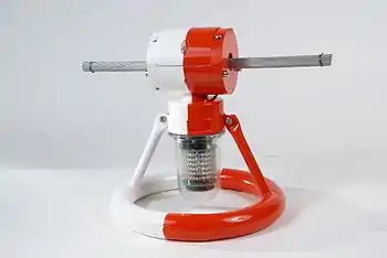 The ideal warning light must be able to power itself while clamped to a single wire of the line. Lights may be powered either from the electric field surrounding the energized wire, or the magnetic field produced by current through the wire. The first approach takes advantage of the high electric potential gradient between conductors, but a strong enough capacitive coupling is requested to allow capacitive extraction of the power required from the warning light. This means that long conductors must be suspended parallel to the line using glass/ceramic isolators: in fact several meters of suspended conductor are generally required, total length being inversely proportional to the line voltage. The second approach is based on Faraday's law of induction involving magnetic flux flowing through a circuit which powers the warning light.