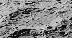 Avogadro is an ancient lunar impact crater that is located in the northern hemisphere on the far side of the Moon. The formation has been heavily worn and eroded by subsequent impacts, so that the rim is now little more than a rounded edge surrounding the crater depression. The crater floor is equally worn, being covered in a multitude of smaller craters of various sizes. Many of these smaller craters have also been eroded, leaving little more than a faint trace on the surface.