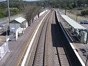 Until its formal closure in December 1989, Awaba was the junction for the line to Wangi Power Station, the remnants of which remain behind Platform 1.[5] North of the station are two passing loops, although the northbound one has now been disconnected.