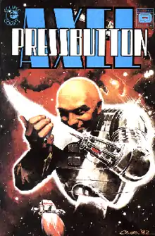 ![]() Axel Pressbutton #6 (Eclipse Comics, July 1985), cover art by Mick Austin. | |