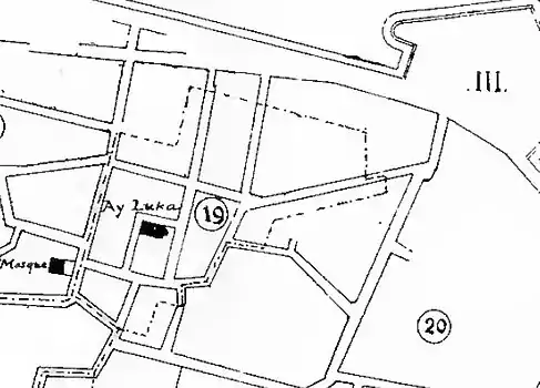 Ayios Loukas is one of the 24 historic Neighbourhoods of Nicosia within the walls.[2] During the Ottoman period it was accounted as one of the Greek Orthodox Quarters of Nicosia.[7] However, all the adjacent Neighbourhoods, such as Yeni Jami and Ak Kavuk (Abu Kavuk), were overwhelmingly moslem in character. By 1946 the Greek Orthodox population had dropped to 33%.[5]