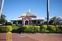 The Ayr Court House is one of several buildings that contribute to the town's civic precinct in the main street, Queen Street. The police station, court house, town hall, library and post office dominate the north-west side of Queen Street between Mackenzie and Young Streets.[1]