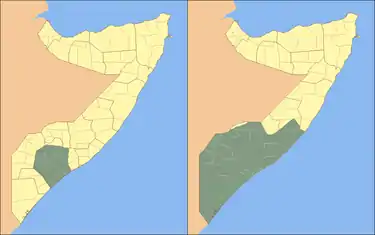 Although Azania formally represented all three provinces of Jubaland, it is difficult to determine which specific territory the Azania administration actually controlled.[3]