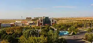 Azarbaijan Shahid Madani University, (Persian: دانشگاه شهید مدنی آذربایجان, Danushgah-e Shihid-e Midâni-ye Âzerbaijan) commonly called only Azarbaijan University, is a public university located near Tabriz, East Azerbaijan Province, Iran, founded in 1987. The university provides both undergraduate and graduate education to approximately 7,500 students at a wide range of fields including engineering, basic sciences, literature and theology. The university has got Research Gate's total impact point of 1716.47 from 61 publications, according to the latest statistics.[1]