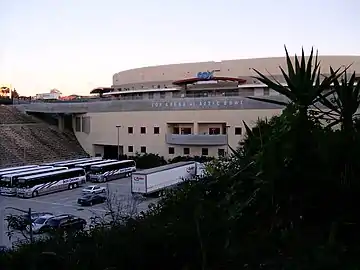 Aztec Bowl is listed on the National Register of Historic Places:[8] The old concrete bleachers of the football stadium were not demolished when the new arena was built. John F. Kennedy, then the President of the United States of America, gave the graduation commencement address at San Diego State University on June 6, 1963.[9][10][11][12]
