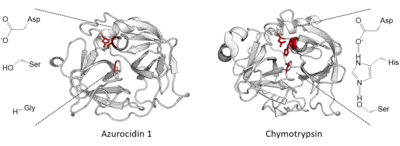 - Watorek W (2004). "Azurocidin -- inactive serine proteinase homolog acting as a multifunctional inflammatory mediator". Acta Biochim. Pol. 50 (3): 743–52. doi:10.18388/abp.2003_3665. PMID 14515154.