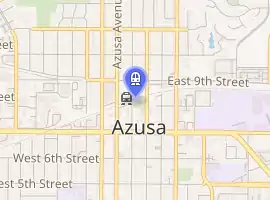 Azusa Downtown is an at-grade light rail station on the L Line of the Los Angeles Metro Rail system. It is located on Alameda Avenue, a block north of Foothill Boulevard, after which the station is named.