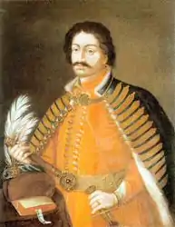 Baron Bálint Balassi de Kékkő et Gyarmat (Hungarian: Gyarmati és kékkői báró Balassi Bálint, Slovak: Valentín Balaša barón z Ďarmôt a Modrého Kameňa; 20 October 1554 – 30 May 1594) was a Hungarian[1][2][3] Renaissance lyric poet. He wrote mostly in Hungarian,[4] but was also proficient in eight more languages: Latin, Italian, German, Polish, Turkish, Slovak, Croatian and Romanian.[4] He is the founder of modern Hungarian lyric and erotic poetry.
