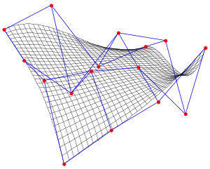 Bézier surfaces are a species of mathematical spline used in computer graphics, computer-aided design, and finite element modeling. As with Bézier curves, a Bézier surface is defined by a set of control points. Similar to interpolation in many respects, a key difference is that the surface does not, in general, pass through the central control points; rather, it is "stretched" toward them as though each were an attractive force. They are visually intuitive, and for many applications, mathematically convenient.