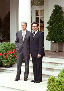 In July 1974, inter-communal violence in Cyprus once again flared up when pro-EOKA forces staged a coup against president Makarios. Ecevit went to London to met with British officials, as the UK is also a guarantor state of Cyprus, but a common policy for the situation in Cyprus was not found. Ecevit decided to militarily intervene and invaded Cyprus, for which he is nicknamed the 'Conqueror of Cyprus' (Turkish: Kıbrıs Fatihi).[23] This resulted in an arms embargo by the United States on Turkey which lasted for three years.[24]