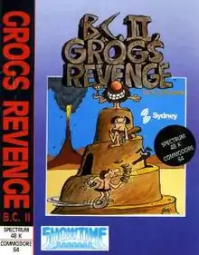 B.C. II: Grog's Revenge is a 1984 video game by Sydney Development for the Commodore 64, ColecoVision, Coleco ADAM, and MSX.[1][2] It is the sequel to B.C.'s Quest For Tires and is based on B.C., the newspaper comic strip by Johnny Hart. The game was advertised for the Atari 8-bit, ZX Spectrum, BBC Micro, and Amstrad CPC, but those ports were never released.[3]