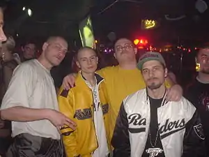 B.U.G. Mafia (an abbreviation for"Bucharest Underground Mafia"), is a Romanian hip hop group from Pantelimon, Bucharest, widely regarded as one of the seminal acts of gangsta rap in Romania. Founded in 1993 as Black Underground, its original lineup consisted of Vlad "Tataee" Irimia, Dragoș "Caddy" (short for Cadillac) Vlad-Neagu and two other members, D.D. and Mr.Nobody, who, by the end of the year, had already departed from the group.[1] Irimia and Vlad-Neagu, who were still teenage high school students at the time, had been working on amateur solo recordings and had little professional prospects on their own prior to their encounter.[2] The group initially performed as a duo throughout Bucharest at local highschool proms and parties while considering their options for professional careers in music and, following a string of relatively unsuccessful attempts at promoting their music in English, they recruited Alin "Uzzi" Demeter in 1995 and eventually transitioned to writing in Romanian.[3][4]