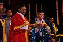 Belle Monappa Hegde (born 18 August 1938) is a cardiologist, professor of medicine, and author. He was the Vice Chancellor of Manipal Academy of Higher Education from 1999 to 2003.[3] He was awarded Padma Bhushan in 2010 and Padma Vibhushan in 2021.[3] He has supported pseudoscientific theories of Homeopathy[4] and quantum healing.[5]