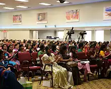 The mandir has been hosting an annual Women's Day conference since 2008.[12] In 2012, the focus was on the ancient Hindu teachings of the four purusharths (goals of life). The theme was meant to resonate with community members who work to balance their family and career. Panelists and speakers shared relevant applications of the purusharth teachings.[12] In 2013, the theme of the conference was “Timeless Traditions: Celebrating the Past, Cultivating the Future.” Guest speakers included Nandita Parvathaneni, wife of Honorable Consul General of India in Houston, Harish Parvathaneni, and Alpana Thakker, a prominent lawyer in the Houston community.[13] Panelist discussions and speeches focused on the importance of instilling culture and tradition in future generations.