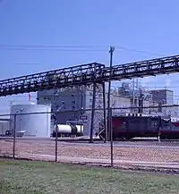 BASF bought the Wyandotte Chemical Company, and its Geismar, Louisiana chemical plant in the early 1970s.[17] The plant produced plastics, herbicides, and antifreeze. BASF soon tried to operate union-free, having already reduced or eliminated union membership in several other US plants. Challenging the Geismar OCAW union resulted in a labor dispute that saw members locked out from 1984 to 1989 and eventually winning their case. A worker solidarity committee at BASF's headquarters plant in Ludwigshafen, Germany, took donations from German workers to support the American strikers and organized rallies and publicity in support. The dispute was the subject of an academic study.[18] The union also exposed major accidental releases of phosgene, toluene and other toxic gases, these being publicized in the local media and through a video, Out of Control.[17][19] A court threw out a $66,700 fine against BASF for five environmental violations as "too small".[17]