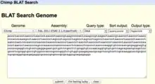 Once the query sequence is uploaded/pasted into the search field, the user can select various parameters such as which species' genome to target (there are currently over 50 species available) and the assembly version of that genome (for example, the human genome has four assemblies to select from), the query type (i.e. whether the sequence relates to DNA, protein etc.) and output settings (i.e. how to sort and visualise the output). The user can then run the search by either submitting the query or using the BLAT "I'm feeling lucky" search.[8]