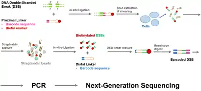 - Similar to BLESS, DSBCapture uses biotinylated adapters to label DSBs in situ and streptavidin beads to isolate labeled DNA fragments for amplification and sequencing.[9] While labeling in BLESS relies on blunt-end ligation, DSBCapture uses more efficient cohesive-end ligation to attach biotinylated modified Illumina adapters. In addition, DSBCapture relies on fewer PCR steps compared to BLESS, reducing amplification bias.[10] This method also generates libraries with higher sequence diversity than BLESS, eliminating the need to spike in other libraries to improve diversity prior to sequencing. Furthermore, DSBCapture uses single-end sequencing in contrast to BLESS where sequencing can begin from both ends. Single-end sequencing results reflect only the sequences of DSB sites, improving data yield.[11]