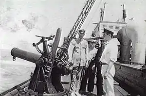 Nonetheless Admiral John Jellicoe, writing a few years after the gun had gone into service, commented: "This weapon, although not very popular at first, soon, however, proved its value, when employed both from patrol craft and from merchant ships."[3]