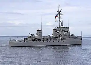 Along with other ex-World War II veteran ships of the Philippine Navy, she was considered one of the oldest active fighting ships in the world,[4] up until its decommissioning on 1 March 2021 after serving a total of 77 years, of which 53 years were with the Philippine Navy.[5]
