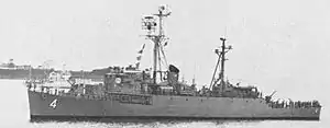 BRP Rajah Lakandula (PF-4) was originally an Edsall-class destroyer escort commissioned by the United States Navy as USS Camp (DE-251) in 1943. In 1956, she was converted to a radar picket ship and later served during the Vietnam War until being decommissioned in 1970.