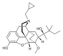 2. Khroyan TV, Polgar WE, Cami-Kobeci G, Husbands SM, Zaveri NT, Toll L (March 2011). "The first universal opioid ligand, (2S)-2-[(5R,6R,7R,14S)-N-cyclopropylmethyl-4,5-epoxy-6,14-ethano-3-hydroxy-6-methoxymorphinan-7-yl]-3,3-dimethylpentan-2-ol (BU08028): characterization of the in vitro profile and in vivo behavioral effects in mouse models of acute pain and cocaine-induced reward". The Journal of Pharmacology and Experimental Therapeutics. 336 (3): 952–61. doi:10.1124/jpet.110.175620. PMC 3061529. PMID 21177476.