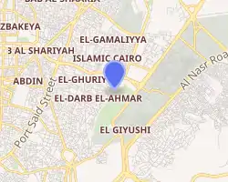In the early 2000s, the rubbish hills east of the historic city were transformed by the Aga Khan Trust for Culture into al-Azhar Park, opened in 2005.[5] In the process, the eastern Ayyubid city walls were excavated and restored between 2000 and 2008, including Bab al-Barqiyya.[3] The gate is now visible on the western edge of the park. Another nearby gate further south, Bab al-Mahruq, was also transformed into the western entrance to the park from the Darb al-Ahmar neighbourhood.[6]