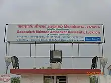Babasaheb Bhimrao Ambedkar University (BBAU) is a Central University in Lucknow, Uttar Pradesh.[3][4][5] The university is named after Babasaheb Ambedkar, social reformer, polymath and the architect of the Indian Constitution. The university was established on 10 January 1996. The university has a satellite campus at Amethi too, which was established in 2016.The University has also signed MoU with Indian Institute of Technology Varanasi (IIT BHU) which includes student training and students exchange program.