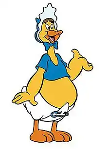 Baby Huey is a gigantic and naïve duckling cartoon character. He was created by Martin Taras for Paramount Pictures' Famous Studios, and became a Paramount cartoon star during the 1950s. Huey first appeared in Quack-a-Doodle-Doo, a Noveltoon theatrical short produced and released in 1950.[2]