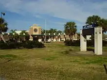 Bacliff was established in 1910 by local landowners G.C. Perkins and W.Y. Fuqua as Clifton-by-the Sea.[6] The area was developed as a seaside weekend resort,[6][7] and included parks, hotels, summer homes, and a bathhouse and open air pavilion built on a pier over the water. Telephone service came to Clifton-by-the-Sea in 1913, and Grand Avenue (FM 646) became the main street.[6] Hurricanes, Galveston's recovery after the Hurricane of 1900, and rapid transportation diminished Clifton-by-the-Sea's popularity.[3][7]