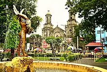 The Bacolod Public Plaza, officially the Plaza del 6 de Noviembre,[2][3] named after the day of the Spanish surrender of Negros Island to the Negros revolutionaries, is one of the notable landmarks of Bacolod, the capital of Negros Occidental, Philippines. It is located in the heart of the downtown area, near the old city hall and across from the San Sebastian Cathedral. The plaza is a trapezoidal park with a belt of trees around the periphery and a gazebo at the center. Scattered within the trees are four circular fountains.