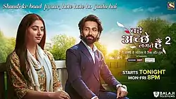 Bade Achhe Lagte Hain 2 (pronounced [bəˈɽeː ˈətʃtʃʰeː ləɡəˈteː ɦɛ̃ː], transl. It all feels so good) is an Indian Hindi-language soap opera that premiered on 30 August 2021 on Sony Entertainment Television.[1] Produced by Ekta Kapoor under Balaji Telefilms, the show is a spiritual sequel or reboot version of the 2011 series of the same name.[2] It stars Nakuul Mehta and Disha Parmar.[3][4]