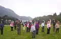 The Baduanjin qigong(八段錦) is one of the most common forms of Chinese qigong used as exercise.[1] Variously translated as Eight Pieces of Brocade, Eight-Section Brocade, Eight Silken Movements or Eight Silk Weaving, the name of the form generally refers to how the eight individual movements of the form characterize and impart a silken quality (like that of a piece of brocade) to the body and its energy. The Baduanjin is primarily designated as a form of medical qigong, meant to improve health.[2] This is in contrast to religious or martial forms of qigong. However, this categorization does not preclude the form's use by martial artists as a supplementary exercise, and this practice is frequent.[2]