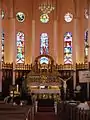 Our Lady of the Atonement Cathedral, better known as Baguio Cathedral, is a Roman Catholic cathedral located at Cathedral Loop adjacent to Session Road in Baguio, the Philippines, and is the see of the Roman Catholic Diocese of Baguio. Dedicated to the Blessed Virgin Mary under the title of Our Lady of Atonement, its distinctive pink exterior, twin spires and stained glass windows make it a popular tourist attraction in Baguio.[1] It served as an evacuation center under the Japanese Occupation during Second World War.