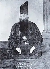 In May 1844, a 24-year-old merchant from Shiraz, Siyyid Mírzá ʻAlí-Muḥammad, stirred Persia with his claim to not only be the promised redeemer of Islam (the Qa’im or Mahdi [Mihdi]), but a new prophet of God similar to Moses, Jesus, and Muhammad.[11][21] He assumed the title “the Báb” (Arabic for "the gate"), indicating his position as a spiritual “gate to divine knowledge”, and to a still greater God-sent educator whose imminent appearance he was preparing the way for.[21][22]