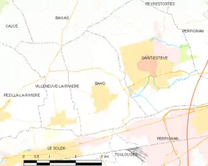 Baho is located in the canton of Le Ribéral and in the arrondissement of Perpignan.